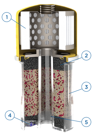 El filtro de espuma retiene cualquier neblina de aceite y distribuye el aire entrante de manera uniforme sobre las áreas de filtración y secado.